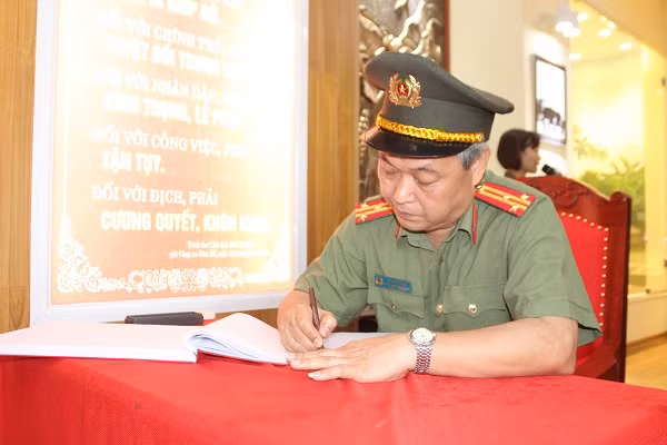 Thượng tá Hồ Ngọc Ngãi, Phó trưởng phòng An ninh kinh tế viết lưu bút tại khu tưởng niệm Bác Hồ