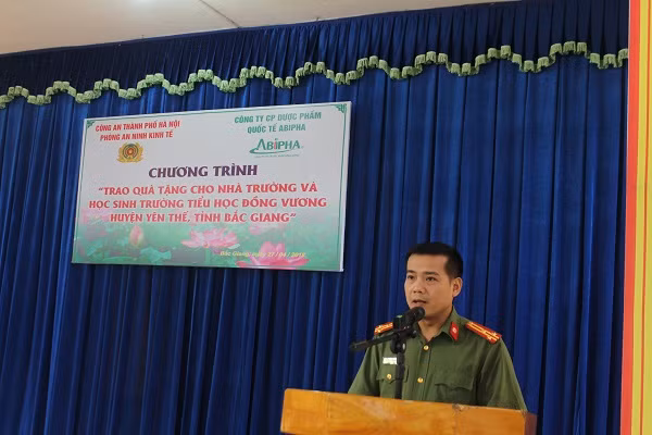 “Để đóng góp một phần công sức nhỏ bé giúp trường Tiểu học Đồng Vương khang trang hơn, các cháu học sinh có điều kiện học tập tốt hơn, toàn thể CBCS Phòng An ninh kinh tế đã tự nguyện đóng góp ít nhất 1 ngày lương, và sự ủng hộ của Công ty Cổ phần dược phẩm quốc tế ABIPHA dành những phần quà nhỏ, hy vọng phần nào đó sẽ động viên tinh thần các cháu và các thầy cô khắc phục khó khăn, vươn lên học tập, và giảng dạy”, Thượng tá Trần Xuân Thành chia sẻ.