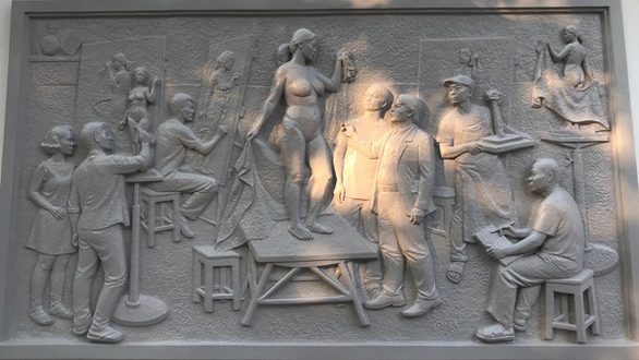 Bức phù điêu nhiều tai tiếng đặt tại trường Đại học Mỹ thuật Việt Nam