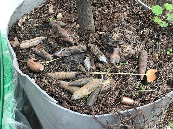 Một gốc cây bên đường trong xã Yên Môn bị găm hàng chục vỏ đạn sau vụ nổ