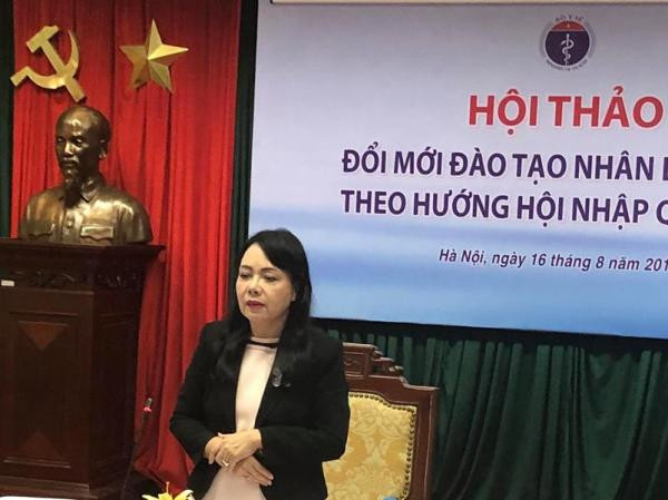 Chiều nay, 16-8, Bộ Y tế đã tổ chức Hội thảo đổi mới đào tạo nhân lực y tế theo hướng hội nhập quốc tế. Chủ trì và phát biểu tại hội thảo, Bộ trưởng Bộ Y tế Nguyễn Thị Kim Tiến đánh giá cao sự phát triển của hệ thống đào tạo nhân lực y tế trong những năm qua, đồng thời chỉ rõ những khó khăn, thách thức đang phải đối mặt.