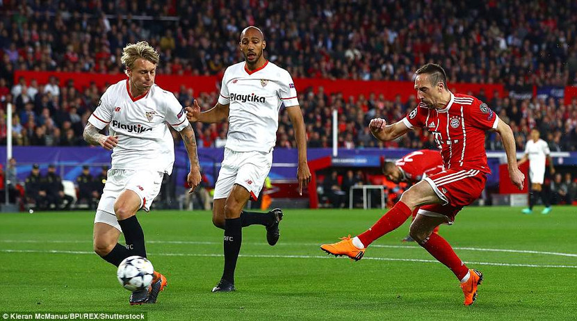 Tuy nhiên, Sevilla ở trận này lại thiếu một thứ mà Bayern có thừa: may mắn. Hùm xám có hàng loạt ngôi sao ở trên sân, nhưng họ tìm thấy bàn gỡ hòa không phải do sự vượt trội ấy. Chỉ 6 phút sau khi nhận bàn thua, từ đường chọc khe của cầu thủ vừa vào sân thay người James Rodriguez, pha đưa bóng vào tầm thấp khá vô hại của Ribery chạm chân Jesus Navas đổi hướng đi vào góc gần khiến David Soria bó tay.