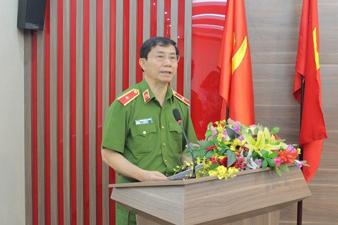 Thiếu tướng Hoàng Quốc Định - Bí thư Đảng ủy, Giám đốc Cảnh sát Phòng cháy và chữa cháy thành phố Hà Nội phát biểu tại hội nghị