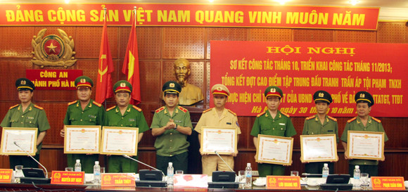 Cùng với nội dung triển khai công tác tháng 11, CATP Hà Nội hôm qua 30-10 đã tổng kết 2 tháng cao điểm tấn công, trấn áp tội phạm và tệ nạn xã hội trên địa bàn thành phố (từ 15-8 đến 15-10); và đánh giá kết quả 2 tháng thực hiện Chỉ thị 17 ngày 12-8-2013 của Chủ tịch UBND TP về “Tăng cường các biện pháp đảm bảo TTGT-TTĐT, an toàn xã hội, vệ sinh môi trường và cảnh quan đô thị trên địa bàn thành phố”.