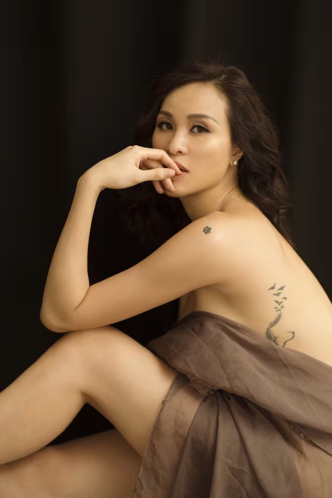 “Không có gì lột tả được hết sự chân thực về hình ảnh người mẹ đang nuôi dưỡng một sinh linh bé nhỏ trong cơ thể và lớn dần lên theo từng ngày bằng những shot hình nude nghệ thuật. Bản thân tôi rất yêu cơ thể mình nên không có bất cứ điều gì phải ngần ngại khi chụp ảnh nude. Và bộ ảnh cũng là món quà tôi dành cho ông xã." - Phương Mai chia sẻ.