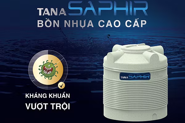 Tập đoàn Tân Á Đại Thành tiếp tục nghiên cứu ứng dụng công nghệ mới sản xuất thành công bồn nhựa cao cấp thế hệ mới Tân Á Saphir với khả năng kháng khuẩn vượt trội. Bồn nhựa cao cấp dòng Saphir tích hợp những tính năng ưu việt: chống tia UV và chống xuyên sáng giúp sản phẩm không bị bay màu, lão hóa nhựa sau thời gian sử dụng và hạn chế tối đa sự hình thành của rong, rêu; sử dụng nguyên liệu hạt nhựa nguyên sinh LLDPE nhập khẩu theo tiêu chuẩn TIS 816-2556, đáp ứng tiêu chuẩn AS/NZS 4020:2002 về dụng cụ chứa đựng nước uống, sinh hoạt, thích hợp sử dụng cho mọi nguồn nước kể cả nước nhiễm mặn, nhiễm phèn; kết cấu nhựa đáp ứng tiêu chuẩn ASTM D 2240 và ASTM D 790 giúp tăng khả năng chống ăn mòn, độ cứng cao, chịu va đập, cách nhiệt tốt, thích hợp sử dụng trong nhà và ngoài trời, kể cả những môi trường khắc nghiệt do sự thay đổi của thời tiết.