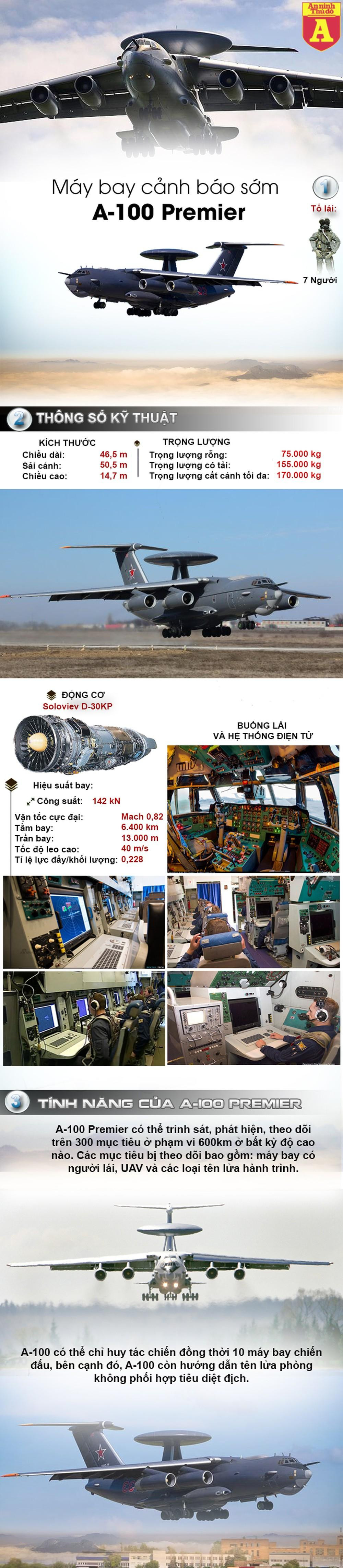 Được biết máy bay chỉ huy cảnh báo sớm A-100 Premier được phát triển dựa trên nền tảng máy bay vận tải Il-76MD-90A, dự kiến sẽ thay thế những chiếc A-50U hiện đang được Không quân Nga sử dụng.