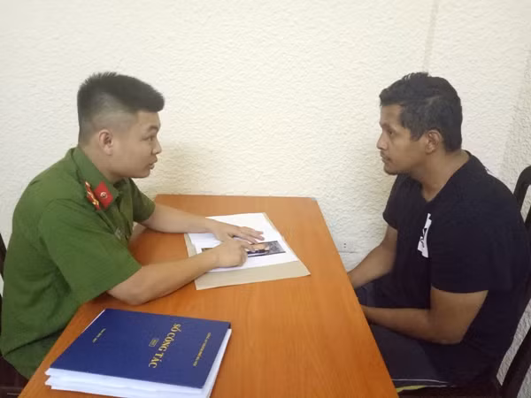 Cán bộ Phòng CSHS - CATP Hà Nội ghi lời khai của Jose, đồng bọn của Fabian