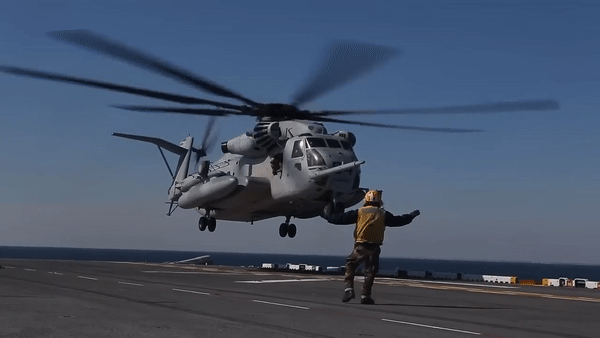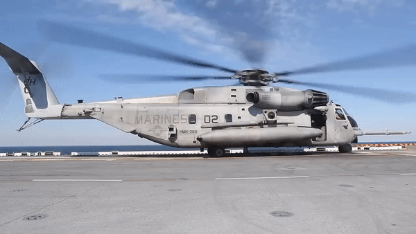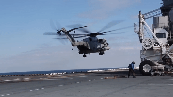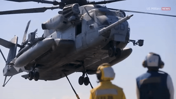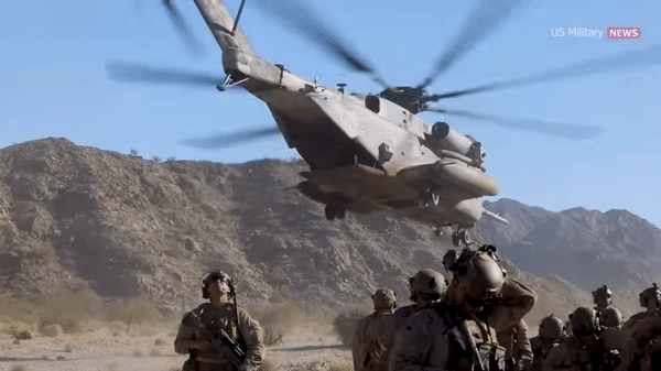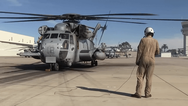 ANTD.VN - Sự tương phản giữa cánh quạt của siêu trực thăng CH-53E và người lính thủy quân lục chiến Mỹ đã cho thấy sự to lớn của dòng máy bay lên thẳng này.