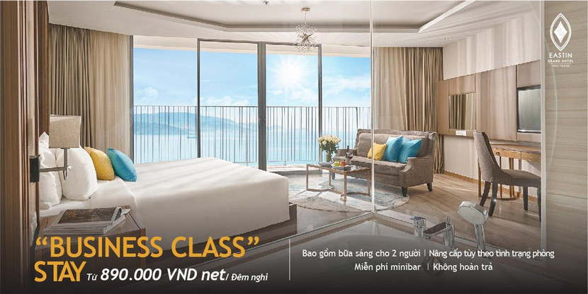 Bên cạnh đó, khách du lịch cũng có thể nâng cấp lựa chọn nghỉ dưỡng của mình với gói “Business Class” Stay dành cho các hạng phòng tầm nhìn hướng biển, hoặc các hạng phòng cao cấp (Executive) có giá chỉ 760.000 đồng/ đêm phòng (đã bao gồm thuế phí). Giá này đã bao gồm buffet sáng dành cho 2 người, đầy đủ tiêu chuẩn sắp đặt của phòng nghỉ 5 sao, miễn phí sử dụng minibar.