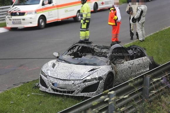 Siêu xe Acura NSX, khi đang tiến hành chạy thử nghiệm trên đường đua Nurburgring, đã không may bốc cháy. Tuy nhiên, tài xế lái thử đã kịp tấp xe vào lề đường ở Pflanzgarten và thoát ra ngoài mà không bị thương.