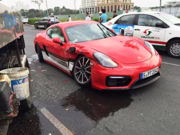 Vụ việc xảy ra chiều 26/3, trong chương trình lái thử các dòng siêu xe Porsche ở TP.HCM, chiếc xe gặp nạn là Porsche Cayman GTS do 1 người đàn ông người cầm lái.