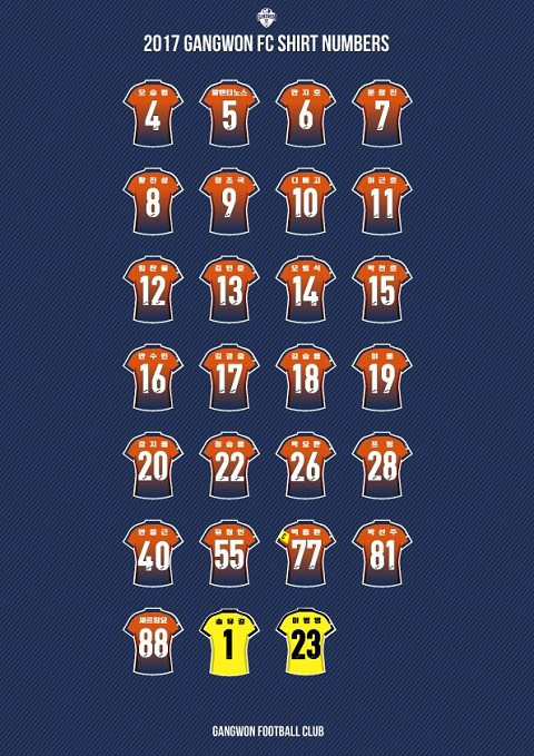 Số 28 của Xuân Trường trong danh sách số áo chính thức Gangwon sử dụng ở mùa giải mới
