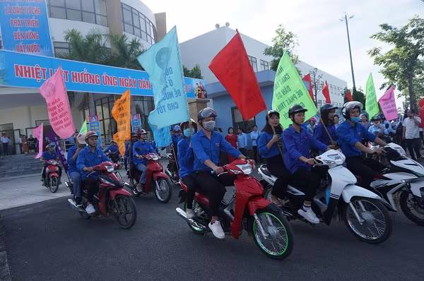 Đoàn viên thanh niên Hà Nội diễu hành hưởng ứng Ngày dân số thế giới năm 2020