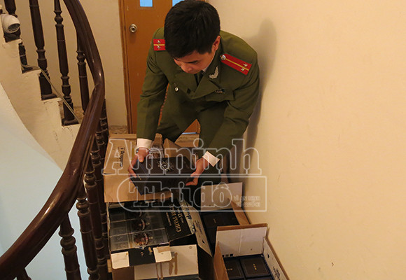 Đến khoảng 16h chiều 20/1, tổ công tác phát hiện đối tượng Tú đang chở 5 thùng rượu Chivas 18 với tổng số 30 chai, tập kết về số nhà 7, ngõ Nhà Chung, nên đã ập vào nhà kiểm tra.