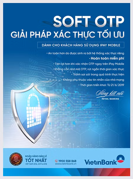 An toàn trong từng giao dịch của khách hàng là trọng tâm hàng đầu trong việc cung cấp các sản phẩm dịch vụ công nghệ cao, từ 21/6/2019 VietinBank chính thức cung cấp giải pháp xác thực mới Soft OTP cho các khách hàng đang sử dụng ứng dụng iPay Mobile. Soft OTP hiện là giải pháp tiện dụng và an toàn nhất hiện nay, phòng tránh được các giao dịch lừa đảo gian lận dẫn tới mất tiền của khách hàng.