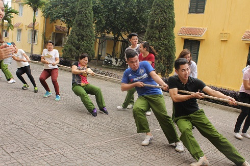 Không khí náo nhiệt, tiếng reo hò cổ vũ các đội kéo co