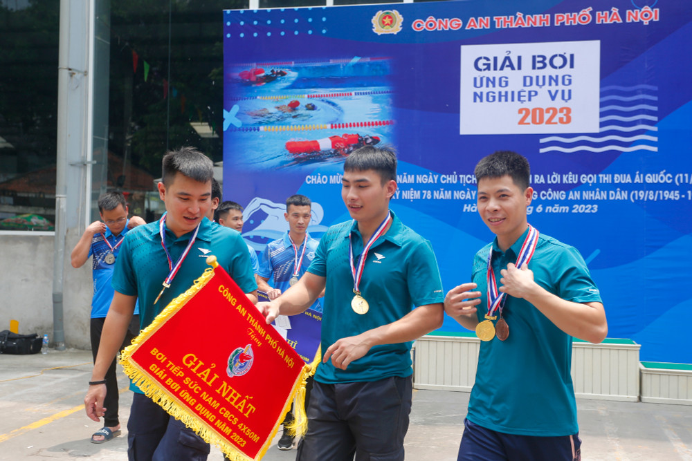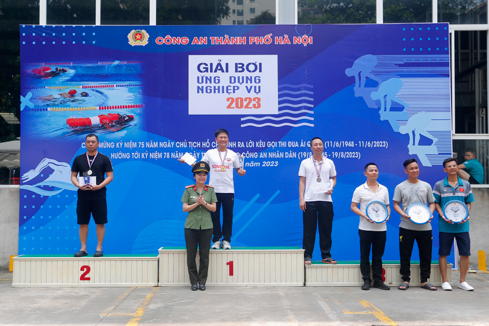 ANTD.VN - Nhằm phát triển thể thao ứng dụng nghiệp vụ trong Công an, phục vụ tốt yêu cầu công tác, chiến đấu của lực lượng Công an trong tình hình mới, Công an thành phố Hà Nội đã tổ chức Giải bơi ứng dụng nghiệp vụ năm 2023. Với sự tham gia của hơn 200 cán bộ, chiến sĩ đến từ 54 đơn vị nghiệp vụ của Công an thành phố Hà Nội, các vận động viên đã nỗ lực thi đấu với ý chí, quyết tâm cao, cống hiến những pha bức tốc trên đường bơi tạo nên một giải đấu sôi nổi kịch tính và lôi cuốn.