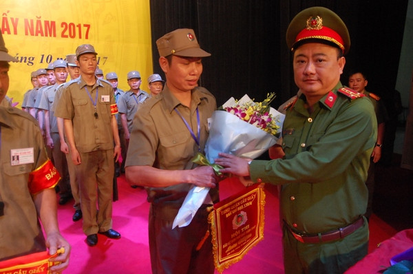 Đại tá Nguyễn Văn Sơn, Trưởng CAQ Cầu Giấy tặng hoa chúc mừng đại diện các đội dự thi