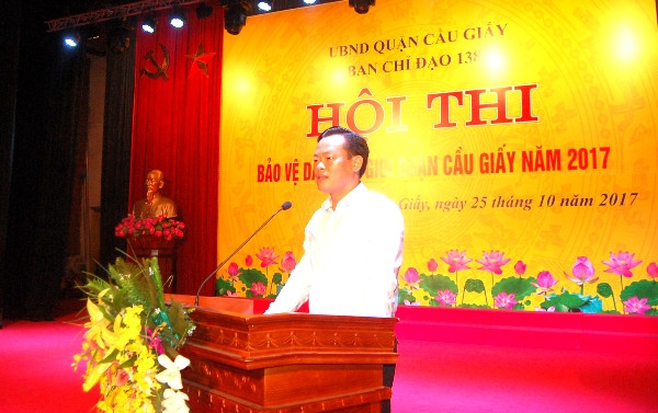 Phát biểu khai mạc hội thi, đồng chí Bùi Tuấn Anh, Phó Chủ tịch UBND quận Cầu Giấy nhấn mạnh tới vai trò đặc biệt quan trọng của lực lượng bảo vệ dân phố đối với sự nghiệp xây dựng, bảo vệ ANTT trên địa bàn. Được xem là cánh tay nối dài của lực lượng công an tại cơ sở, lực lượng bảo vệ dân phố trong thời gian qua đã tham gia, hỗ trợ tích cực Công an chính quy trên mặt trận đảm bảo ANTT, vận động nhân dân trên địa bàn phòng ngừa, đấu tranh có hiệu quả các loại tội phạm; vận động người dân chấp hành tốt các chủ trương, chính sách của Đảng, pháp luật của Nhà nước...