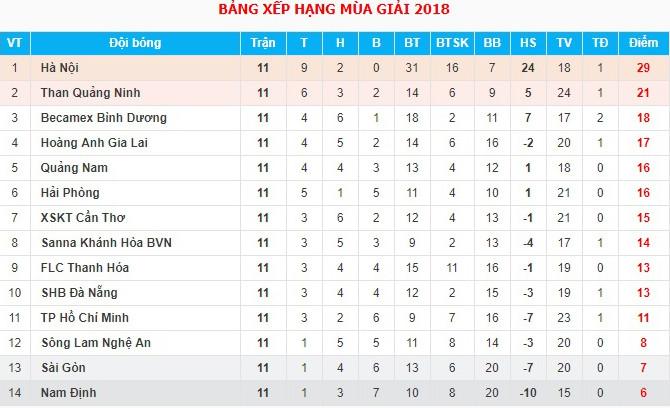 Đáng nói hơn, kết quả này giúp thầy trò HLV Chu Đình Nghiêm có 29 điểm, bỏ xa đội bám đuổi là Than Quảng Ninh tới 8 điểm, qua đó giành ngôi vô địch lượt đi trước hai vòng đấu.