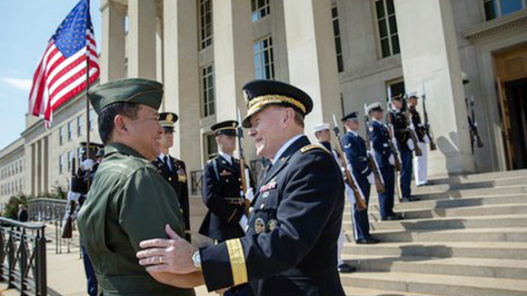 Hai quan chức đứng đầu lực lượng vũ trang cũng tỏ ra mạnh mẽ và cứng rắn khi khẳng định sẽ “răn đe những thế lực có ý đồ cản trở hoặc đe dọa hoạt động hàng hải” ở Đông Nam Á. Tuy nhiên, Mỹ và Philippines cũng cam kết “cách tiếp cận có nguyên tắc” khi giải quyết những tuyên bố tranh chấp chủ quyền trên biển ở khu vực Đông Nam Á bằng biện pháp hòa bình cũng như trong khuôn khổ luật pháp quốc tế.