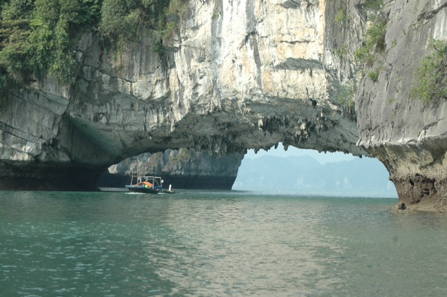 Thuyền đưa tôi ra đảo là thuyền buồm gõ đóng theo lối cổ truyền của Hạ Long. Chiếc thuyền của hợp tác xã Vạn Chài Vung Viêng được đóng để phục vụ khách du lịch dạo chơi trong vịnh. Với hai buồm chừng trăm m2 khi đi chơi chủ yếu chạy bằng gió. Từ bến Cọc Năm bên Hòn Gai ra đảo chừng một tiếng đồng hồ. Nhìn những dãy núi đá vôi đủ các loại hình thù trải dài hết tầm mắt. Làng Vung Viêng cũng nằm trong rặng núi như vậy, gồm có núi Vung Viêng (cao nhất Vịnh Hạ Long), núi Vụng Hà rồi Hang Cao…