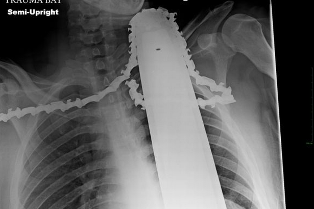 Các bác sĩ ở bệnh viện Allegheny General cho biết, lưỡi cưa đã may mắn không đâm vào những động mạch chủ và trên thực tế, việc nó cắm ở cổ của anh đã giúp anh cầm máu, nhờ đó cứu lấy mạng sống.
