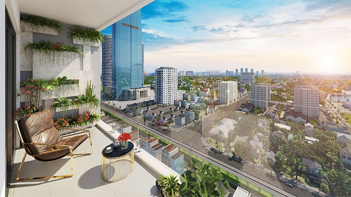 View ban công từ căn hộ Vinhomes West Point nhìn ra khu Keangnam (Ảnh phối cảnh)