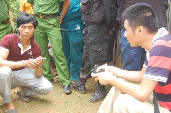 Tẩn Láo Lở bị lực lượng chức năng dẫn giải vào thực nghiệm hiện trường vụ án