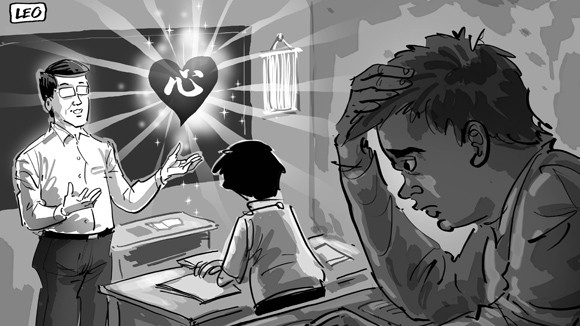Mình hướng về phía học sinh, liếc nhanh Tiến. Mặt cậu ta câng câng, tỉnh khô, ra vẻ tự đắc. Mình cười rất vui với cả lớp, để các em “ dịu” lại, mình nói: