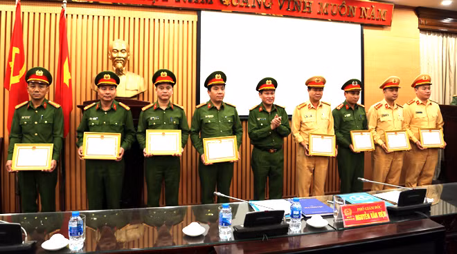 Đại tá Nguyễn Văn Viện - Phó Giám đốc CATP Hà Nội trao tặng Giấy khen cho các đơn vị có thành tích xuất sắc sau 1 tháng triển khai thực hiện Kế hoạch 61
