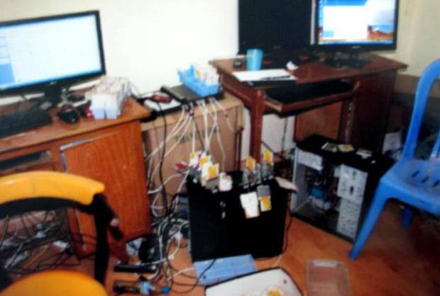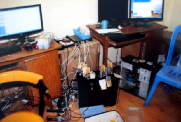 Hoạt động phạm tội của các đối tượng nêu trên được phát hiện khi CAP Thịnh Quang, quận Đống Đa kiểm tra hành chính số nhà 38, ngõ 51, phố Thái Thịnh, phát hiện tầng 2 ngôi nhà có 8 chiếc máy tính để bàn, cùng nhiều rắc chia cổng USB và D-com 3G, với nhiều thẻ sim nghi vấn sử dụng để nhắn “tin rác”.