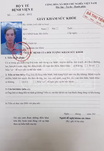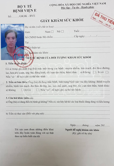 Từ giấy khám sức khỏe có dấu giáp lai...