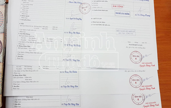 Theo thống kê của Phòng Kỹ thuật hình sự CATP Hà Nội, năm 2017, đơn vị đã tiếp nhận 20 vụ việc của công an các quận, huyện, phòng nghiệp vụ CATP trưng cầu giám định gần 3.400 mẫu giấy tờ khám sức khỏe, giấy chuyển viện, giấy ra viện, giấy nhập viện nghi giả. Qua giám định 100% các mẫu gửi đến đều là giấy tờ giả.