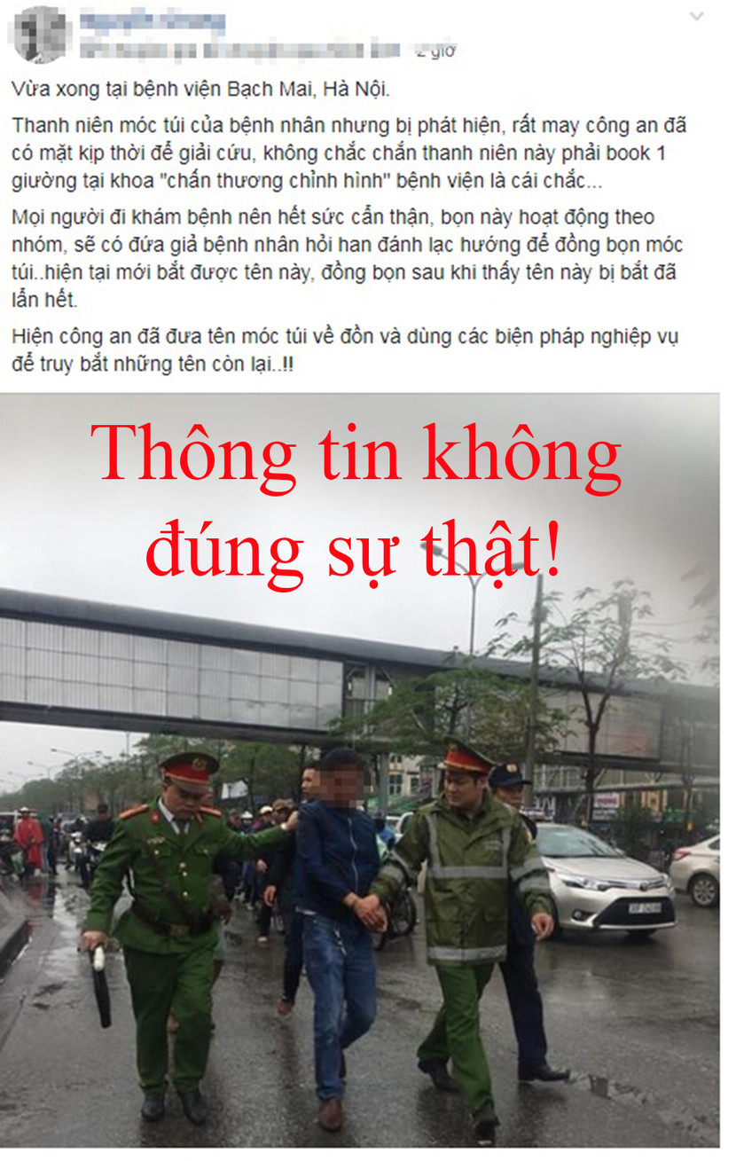 Khoảng 10h ngày 18-3-2019, trên một nhóm mạng xã hội Facebook có đông thành viên xuất hiện thông tin "công an bắt giữ thanh niên móc túi" ở trước cổng Bệnh viện Bạch Mai (đường Giải Phóng, phường Đồng Tâm, quận Hai Bà Trưng, Hà Nội).
