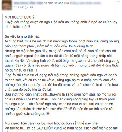 Những tin đồn trên mạng xã hội được lan truyền một cách nhanh chóng: ngô luộc bằng pin, muối diêm, bột nhừ gây hại sức khỏe, đã từng gây khốn khổ cho những người mưu sinh bằng nghề bán ngô dạo trong thời gian qua, thì gần đây lại rộ lên tin đồn về ngô ủ hóa chất không cần luộc vẫn tự chín và tươi ngon.
