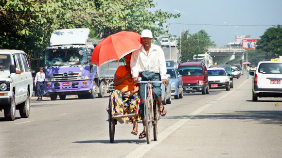 Trái ngược với những làn xe nườm nượp nối đuôi nhau chạy trên đường là hình ảnh những người dân nghèo đu bám, chen chúc trong những chiếc xe buýt rẻ tiền. Cảnh cả chục người cùng đẩy một chiếc xe buýt chết máy dọc đường là khá phổ biến. Xe máy bị cấm nên để tiết kiệm tối đa chi phí di chuyển, nhiều người chọn đi xe đạp thồ thay vì xe buýt. Càng về những vùng ngoại thành, đặc biệt các huyện thị xa xôi, phương tiện xe đạp thồ càng phổ biến, trong khi lượng ô tô, xe buýt thưa thớt dần. Còn tại cố đô sầm uất nhất Myanmar - Yangon, hình ảnh những chiếc xe đạp thồ chở 3-4 người di chuyển song hành với những làn ô tô xuôi ngược trên đường phố Yangon hẳn tạo cho du khách một cảm nhận khác về món đồ trang sức - giao thông, cũng như sự phân hóa giàu nghèo nơi đây.