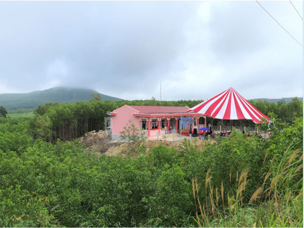 Ngôi trường mầm non Kim Sơn được xây mới trên khuôn viên hơn 800m2 với màu sắc vui tươi, bao gồm 3 lớp học tiêu chuẩn, 1 bếp ăn và 1 sân chơi. Điểm trường mầm non tại thôn Kim Sơn được xây dựng nhằm tạo điều kiện để các trẻ trong độ tuổi mầm non của thôn được đến lớp, được chăm sóc giáo dục và dinh dưỡng. Đồng thời, ngôi trường tại vùng sâu này sẽ giúp đỡ hỗ trợ các bậc phụ huynh chăm sóc con nhỏ và yên tâm thực hiện công việc hàng ngày, tăng thu nhập cho gia đình.