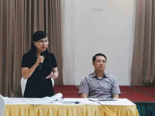 Bà Nguyễn Thị Kim Phụng và ông Nguyễn Đức Cường (Bộ GD&ĐT) trao đổi với báo chí về dư thảo Luật Giáo dục, Luật Giáo dục Đại học sửa đổi