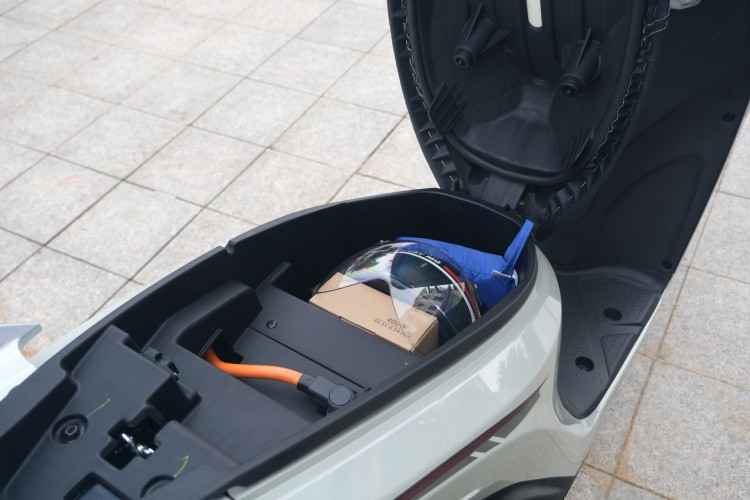 Điểm cộng lớn về tiện ích là cốp xe rộng rãi với dung tích lên tới 34 lít (khi sử dụng một pin).“Dung tích cốp này đủ để chứa mũ bảo hiểm, áo mưa và rất nhiều vật dụng cá nhân khác, giải quyết bài toán không gian cho người dùng. Tôi dùng thì tiện mà vợ muốn mượn xe cũng thoải mái, chị em phụ nữ đi đâu cũng có chỗ để túi xách, đồ đạc”, anh Huỳnh Nhân (TP.HCM) nói. Anh Nhân có ý định mua Feliz để cả hai vợ chồng cùng sử dụng, nhằm sớm thích ứng với các quy định vềkiểm soát khí thải, hạn chế xe xăng trong nội đô trong thời gian tới.