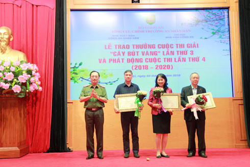 Thượng tướng Nguyễn Văn Thành, Thứ trưởng Bộ Công an trao giải Nhì cho các tác giả, nhà văn đạt giải