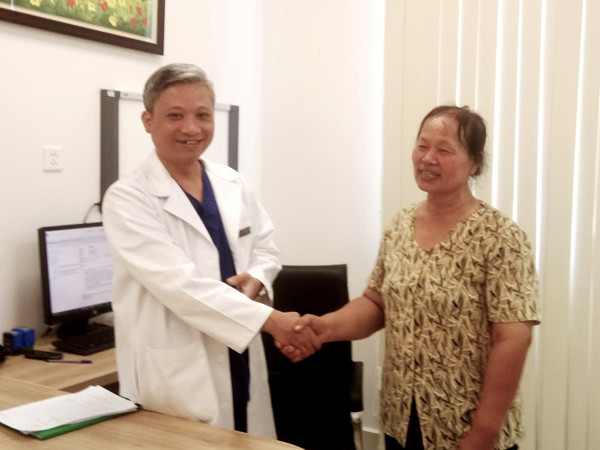 Bà Cường cảm ơn các bác sĩ Trần Thanh Hùng đã chữa trị cho mình khỏi bệnh nhiều năm