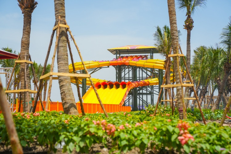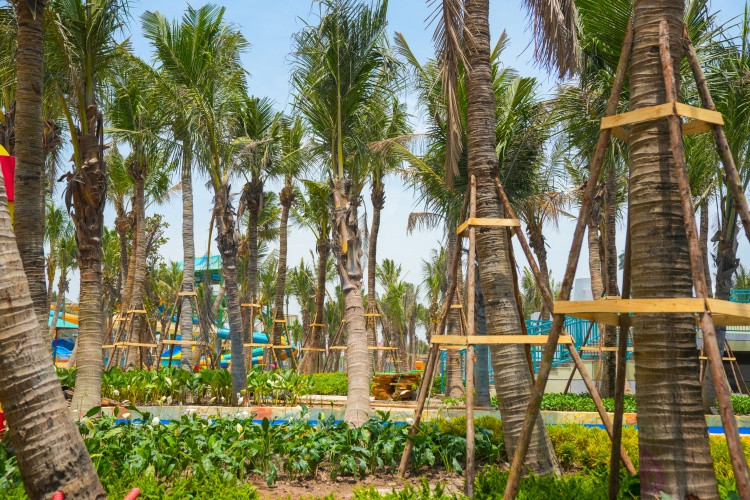 Không chỉ đầu tư công nghệ, Sun Group còn dành hơn 15 tỷ đồng để phủ xanh công viên nước với gần 2.000 cây dừa cao vút, những hàng chà là mềm mại và thảm cỏ xanh tươi. Những tán dừa cong cong nghệ thuật, đan xen giữa các khu trò chơi, không chỉ tạo bóng mát mà còn mang đến cảm giác như đang lạc vào một ốc đảo nhiệt đới, sẵn sàng cho một mùa hè rực rỡ.
