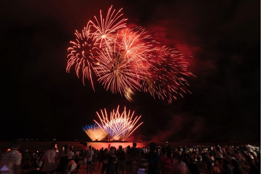 Buổi tối, Vịnh pháo hoa bên bờ biển Bãi Cháy biến thành không gian lễ hội sầm uất: du khách tấp nập chợ đêm Vui-Fest, rồi tụ họp để đón xem pháo hoa "Tỏa sáng Vịnh Kỳ Quan". Trên nền trời vịnh Hạ Long, chuỗi 1.000 quả pháo kết hợp hơn 50 hiệu ứng ánh sáng – từ pháo khói, pháo nước biến không gian thành bữa tiệc ánh sáng mãn nhãn. Nhiều du khách không khỏi ngỡ ngàng trước vẻ đẹp năng động của Hạ Long trong kỳ nghỉ 2/9.