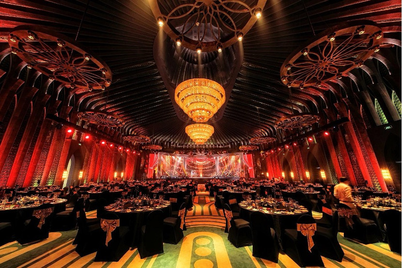 Nổi bật trong tổ hợp là ballroom với sức chứa lên tới 1.000 người, không gian choáng ngợp với mái vòm cao 22 mét và chiếc đèn chùm nặng 500kg, được chế tác tinh xảo từ pha lê quý hiếm và vỏ sò tự nhiên. Toàn bộ khán phòng được điểm xuyết bởi hàng vạn viên đá mica nhiều màu sắc được gắn tay kỳ công, cùng hệ thống chiếu sáng mang âm hưởng Gothic, tạo nên không gian đầy mê hoặc giữa lòng đảo ngọc.