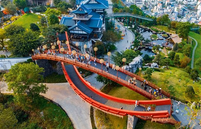 Rời cabin cáp treo, du khách sẽ được chạm tay vào xứ sở Phù Tang thu nhỏ, để dạo bước trong khu vườn Nhật xanh mát để chiêm ngưỡng những tác phẩm bonsai cầu kỳ từ những cây tùng, trúc hàng trăm tuổi, check in cây cầu Koi đỏ rực, tượng trưng cho may mắn và bình an, cùng rất nhiều điểm tham quan mang đậm tinh thần và văn hóa Nhật Bản.