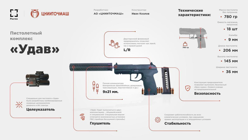 Súng ngắn Udav của Quân đội Nga bội phần nguy hiểm khi bắn đạn tăng khả năng xuyên phá