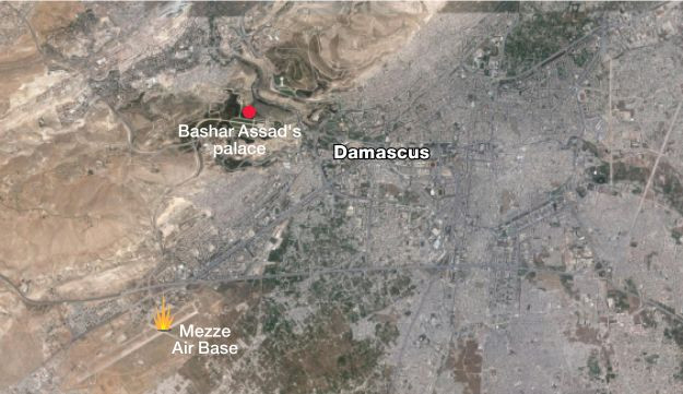 Vài giờ trước đó, nhiều tin tức trên truyền thông xã hội cho biết ít nhất 2 tiếng nổ đã vang lên tại căn cứ không quân Mazzeh thuộc vùng ngoại ô cùng tên, phía Tây Damascus.