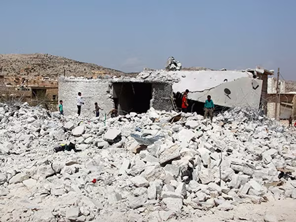 Quang cảnh đổ nát sau một vụ không kích của Mỹ ở Syria